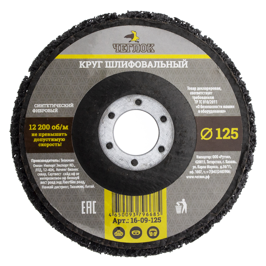 Круг синтетический шлифовальный на УШМ, черный, мягкий, 125х22.2мм, Чеглок (5/100) оптом