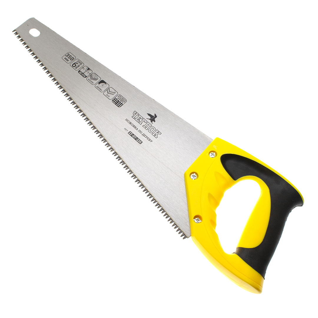 Ножовка по дереву, 3D заточка, каленный зуб. Предназначена для распила древесных материалов вдоль и поперек волокон. Удобная, двухкомпонентная, эргономичная ручка с прорезиненными вставками.