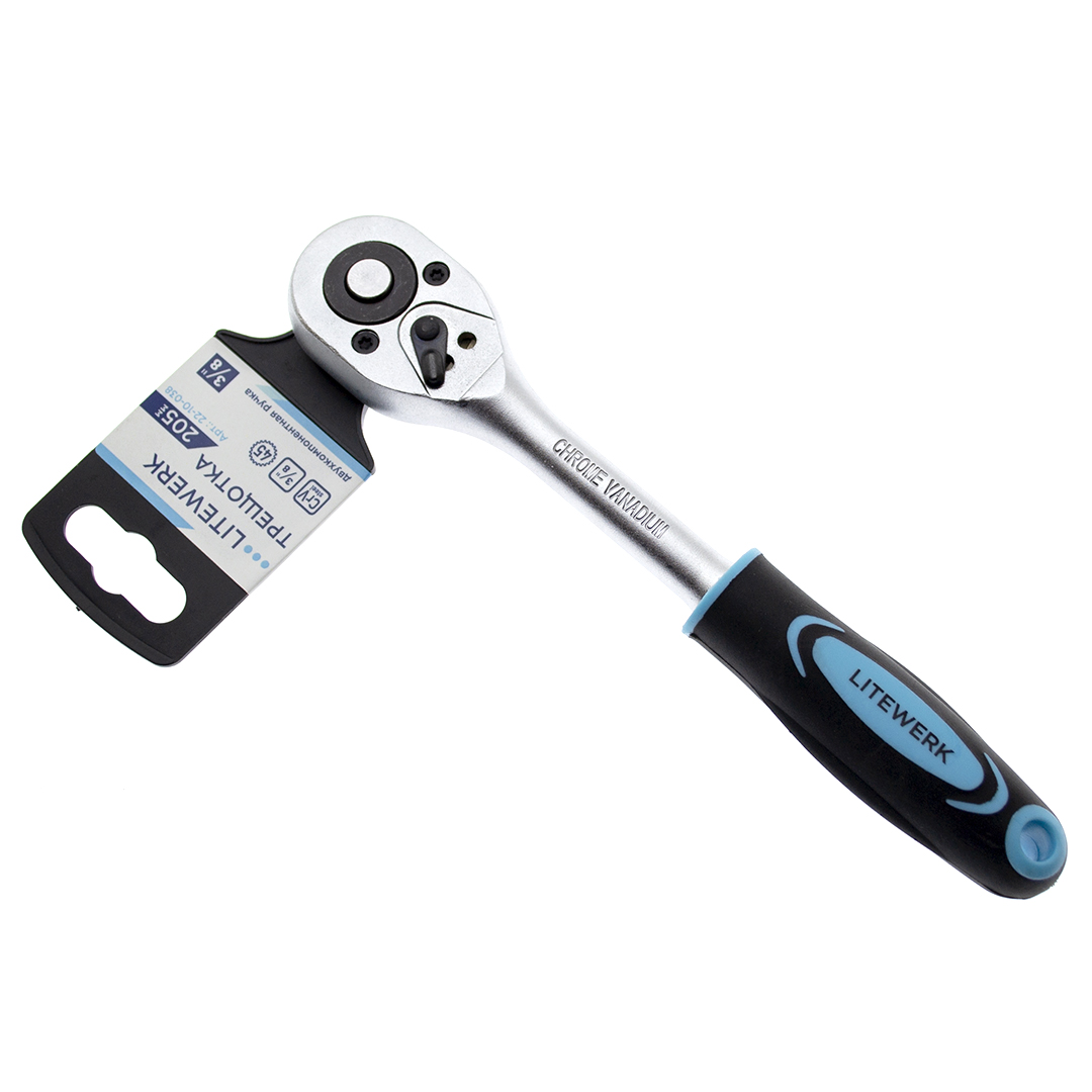 Трещотка 3/8”, 200 мм, 45 зубьев, двухкомпонентная ручка, LiteWerk оптом